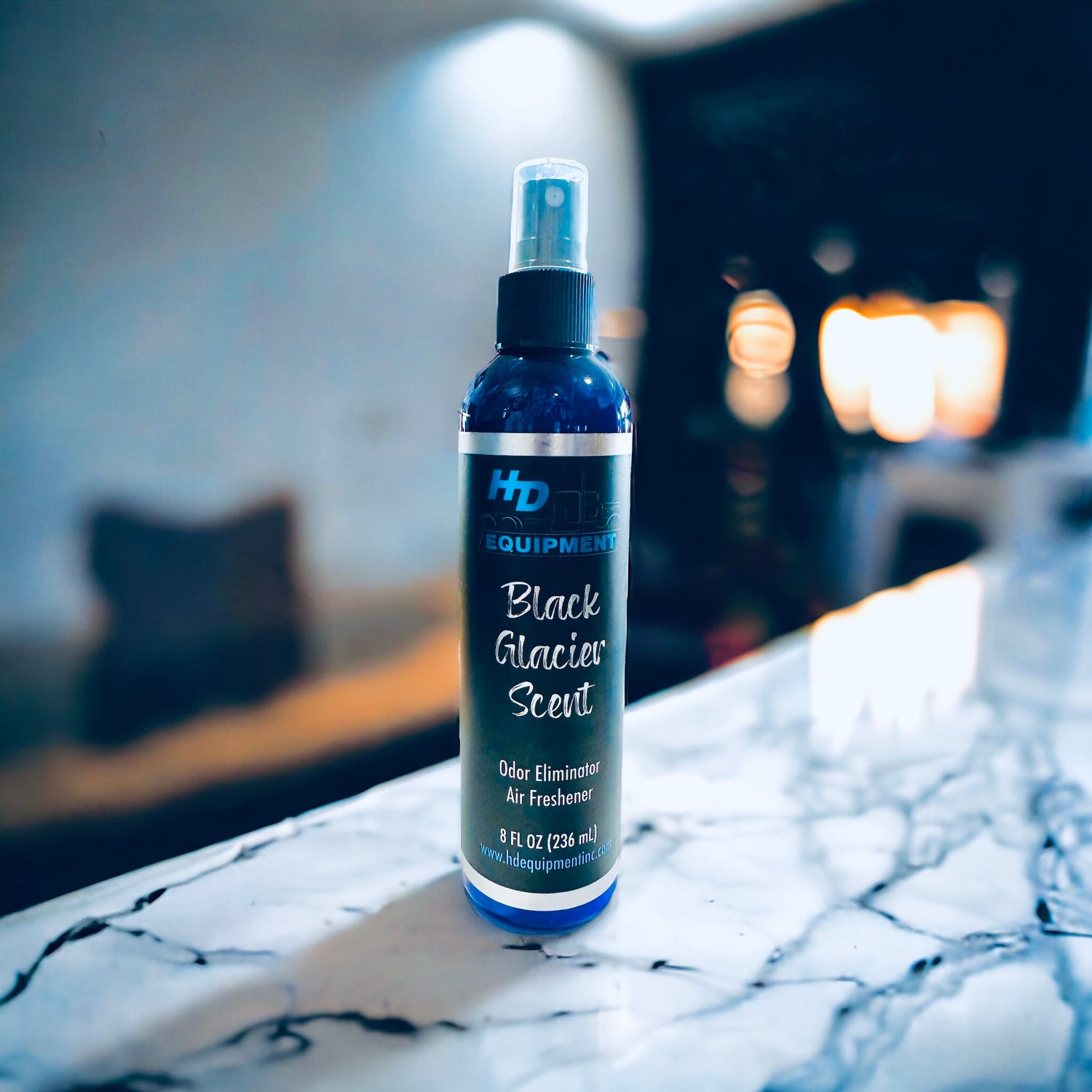 Do you love that smell of fresh leather or Black Ice when you open your truck door? If so, the HD Equipment New spray air freshener is perfect product for you. Just spray it inside your truck to get that fresh smell. You can spray it directly on carpets or wipe it on the interior. Best of all it helps break down bacteria that may be causing foul odors. Therefore it eliminates bad odors while filling your truck with a fresh and clean smell. Available in New Leather or Black Glacier scent