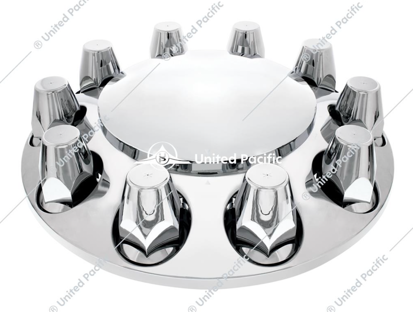 Add some flare to your big rig with some axle covers from United Pacific! We offer a wide selection of axle covers to choose from. Take your pick of chrome plastic or steel, dome or pointed, or even ones with spike thread-on nut covers.
