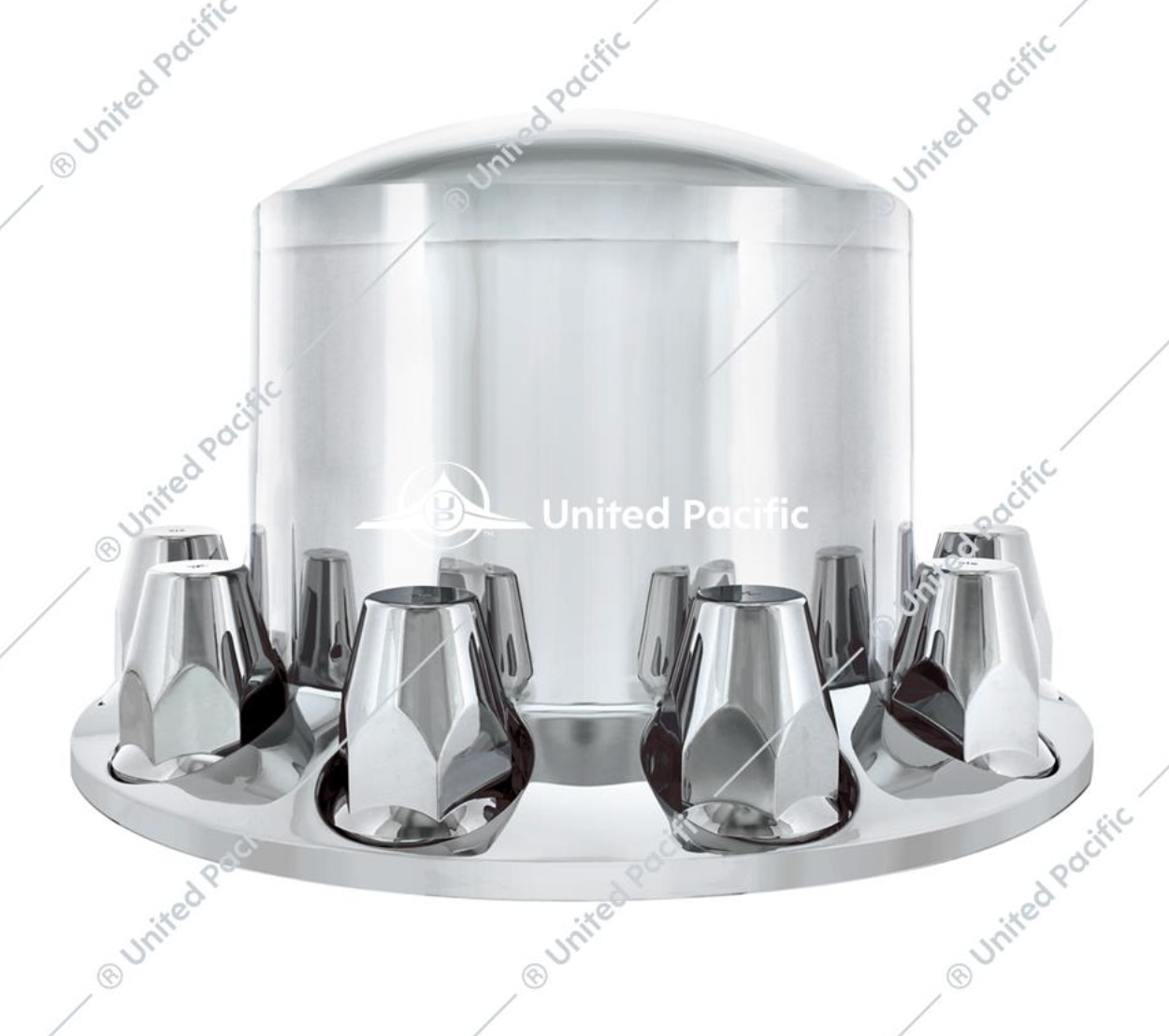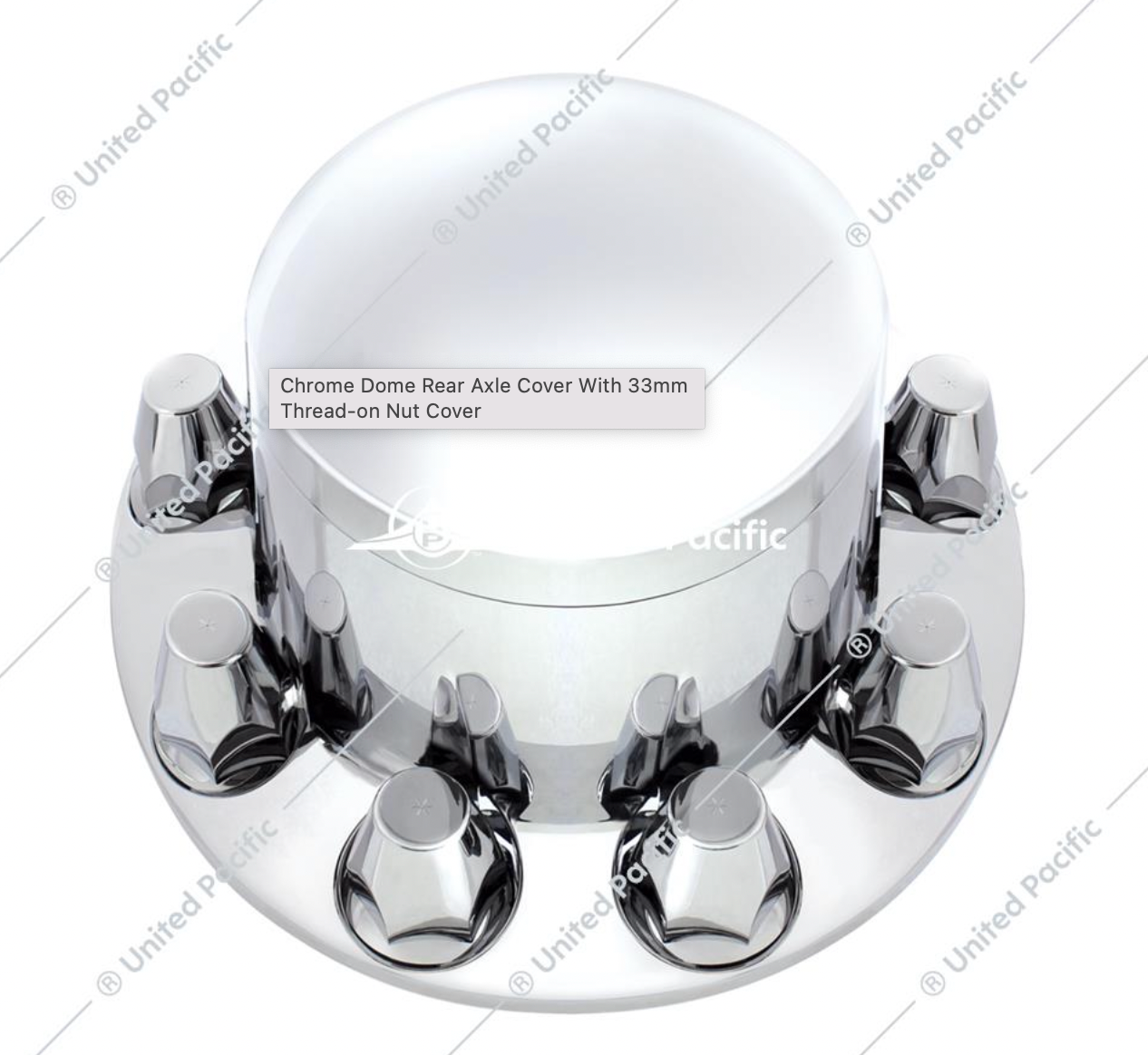 Add some flare to your big rig with some axle covers from United Pacific! We offer a wide selection of axle covers to choose from. Take your pick of chrome plastic or steel, dome or pointed, or even ones with spike thread-on nut covers.