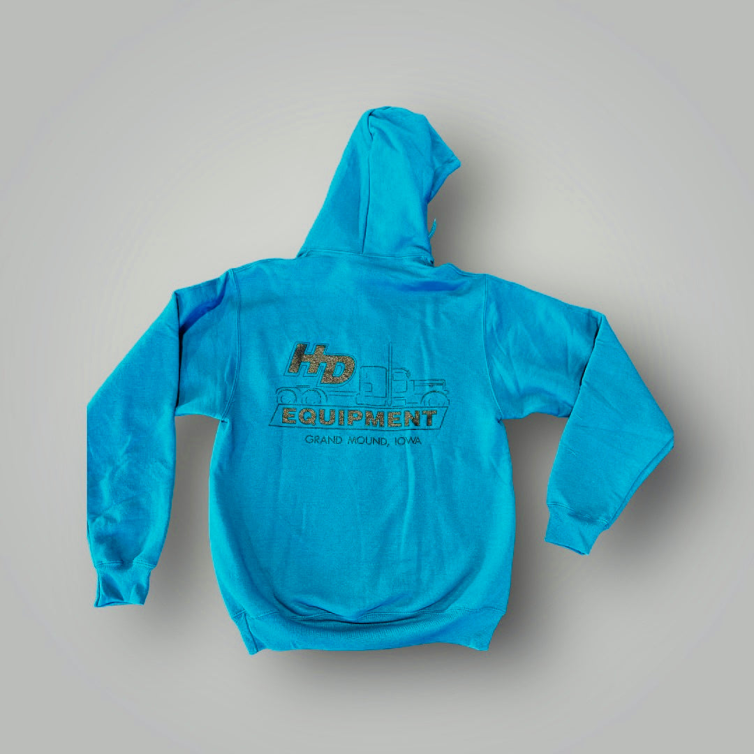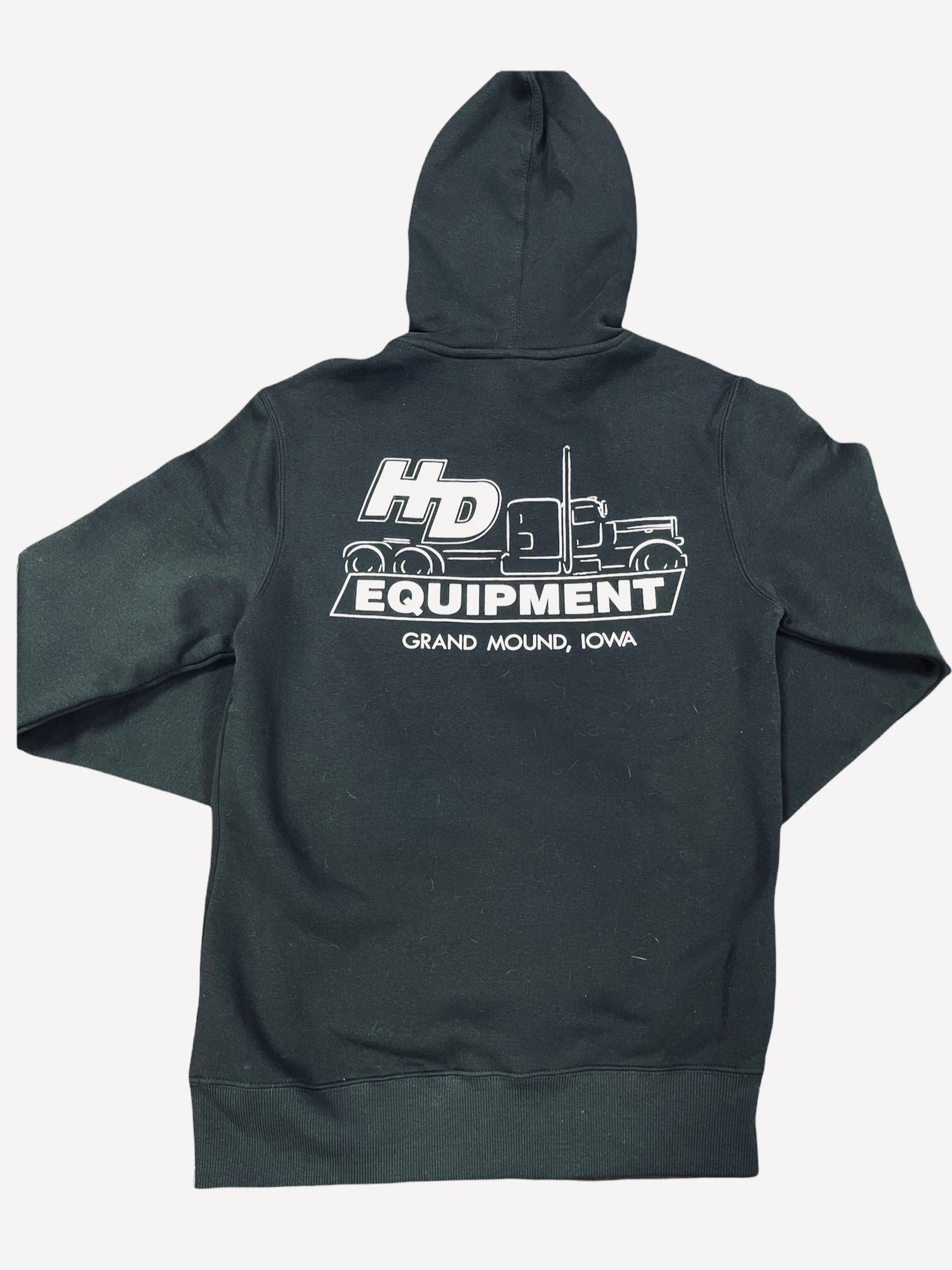 This premium medium weight fleece lined sweatshirt features a large HD Equipment logo on the back with a small logo on the front.