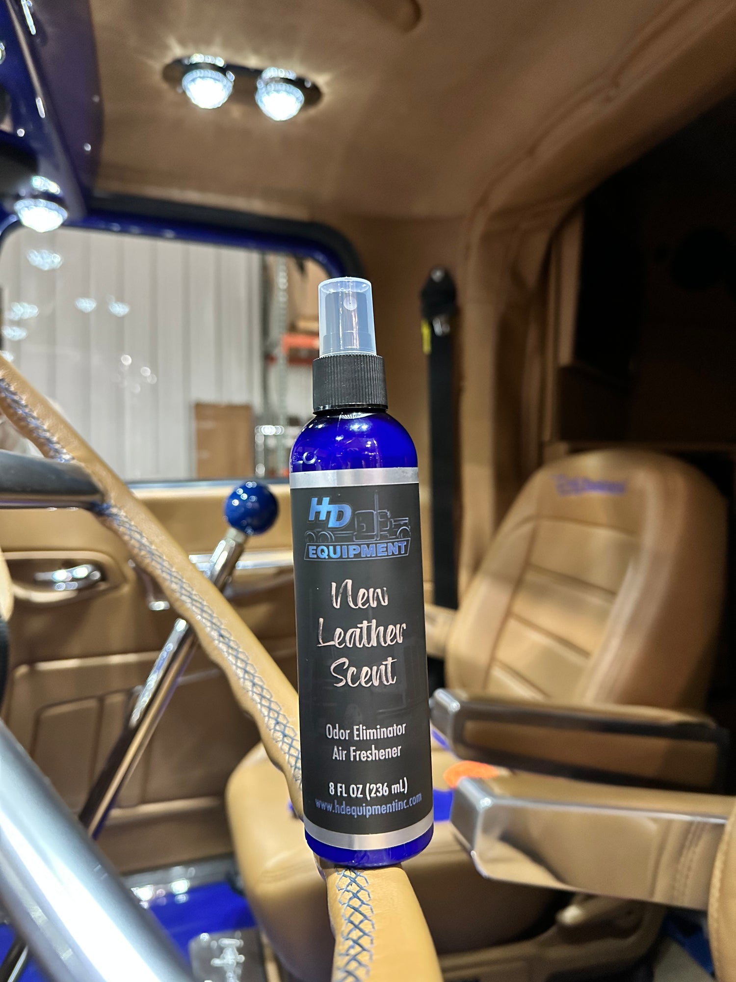 Do you love that smell of fresh leather or Black Ice when you open your truck door? If so, the HD Equipment New spray air freshener is perfect product for you. Just spray it inside your truck to get that fresh smell. You can spray it directly on carpets or wipe it on the interior. Best of all it helps break down bacteria that may be causing foul odors. Therefore it eliminates bad odors while filling your truck with a fresh and clean smell. Available in New Leather or Black Glacier scent